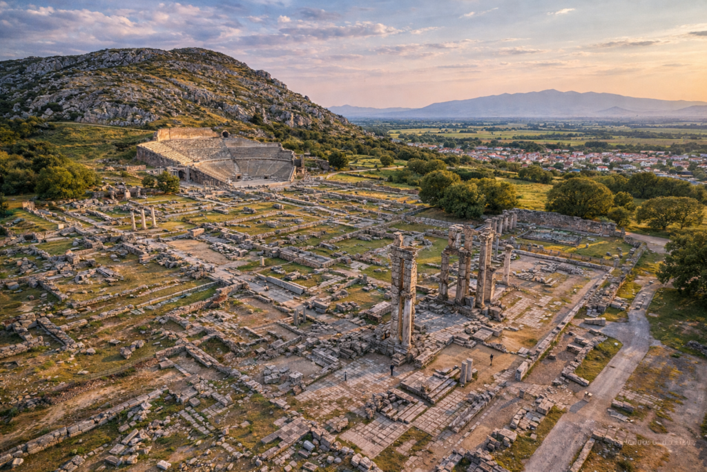 Οι Φίλιπποι αποτελούν έναν από τους σημαντικότερους αρχαιολογικούς χώρους της Ελλάδας και μνημείο Παγκόσμιας Κληρονομιάς της UNESCO. Η αρχαία πόλη ιδρύθηκε από τον Φίλιππο Β΄ της Μακεδονίας και γνώρισε μεγάλη ακμή κατά την ελληνιστική και ρωμαϊκή περίοδο. Σήμερα οι επισκέπτες μπορούν να θαυμάσουν το αρχαίο θέατρο, τη ρωμαϊκή αγορά και τις παλαιοχριστιανικές βασιλικές, σε έναν χώρο που συνδυάζει ιστορία, πολιτισμό και εντυπωσιακό φυσικό τοπίο.