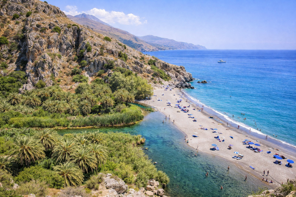Παραλία: Εξωτική παραλία με φοίνικες, Ποτάμι που εκβάλλει στη θάλασσα, Μοναδικό φυσικό τοπίο